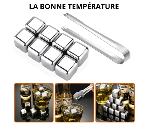 8 Cubes Stainless Steel™ | Glaçon | Ensemble Réutilisable | Vin | Bière | Whiskey | Refroidissant